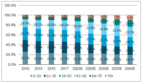 ◎ 根据预测,到了2040年,65岁以上人口占23.5%,50岁以上人口占比超过4成。/ 智研咨询